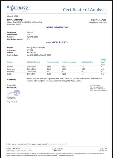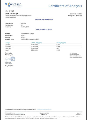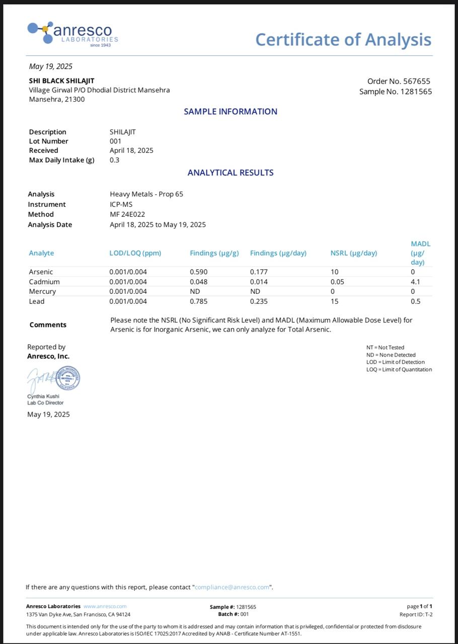 Shi Black Shilajit is lab-tested by accredited U.S. laboratories, ensuring authenticity, purity, and quality assurance. Our rigorous testing process guarantees that every batch meets the highest standards of potency, delivering a premium-grade Himalayan Shilajit resin packed with essential minerals and fulvic acid for maximum effectiveness.
